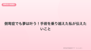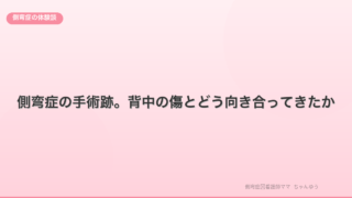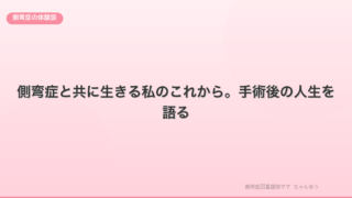 私は小学生のときに側弯症と診断され、中学の時に手術を受けました。あのとき、自分の体に何が起きているのかよくわからず、ただただ不安でいっぱいでした。学...